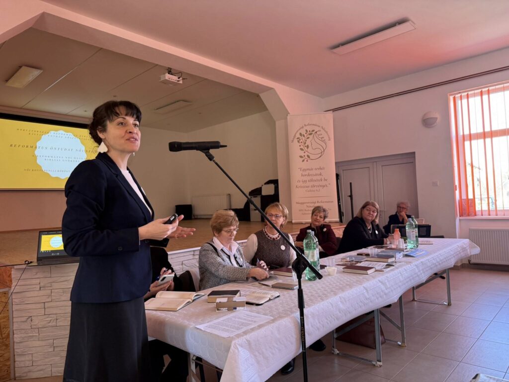 Az első előadást Koncz-Vágási Katalintól, a Magyarországi Református Nőszövetség elnökétől hallottuk, aki hangsúlyozta, hogy az öntudatos református nő biblikus. Egyedüli zsinórmértéke a Biblia. Ehhez igazodik az élete, és ezért rendíthetetlenül kitartó, hűséges és hősies a viselkedése. Ha számunkra ezek az értékek a legfontosabbak, akkor Istennél van a mi szívünk, és egyben a mi kincsünk is nála lesz.